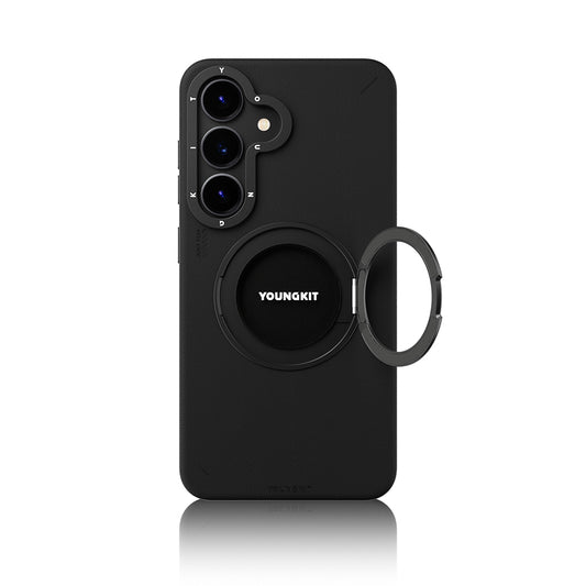 Galaxy S25 Kılıf M-safe Şarj Özellikli 360° Standlı Basit Mat Deri Desenli Youngkit Tech Leather Serisi Kapak