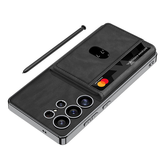 Galaxy S25 Ultra Kılıf M-safe Şarj Özellikli Suni Deri Tasarımlı Zore Kıpta Ayrılabilen Kartlıklı Kapak
