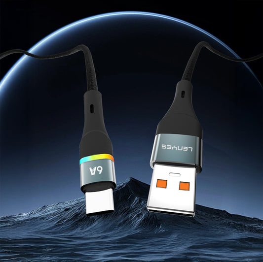 Lenyes LC520 USB-A to Type-C 6A Örgü Tasarımlı Hızlı Şarj Özellikli Data ve Şarj Kablosu 66W 1M
