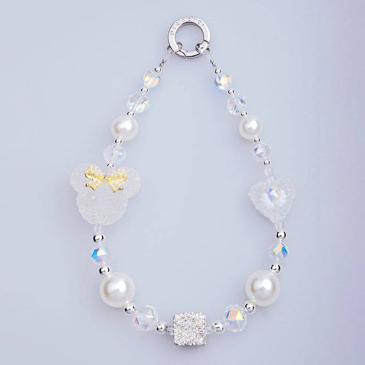 Picocici İnci Taş Tasarımlı Fiyonklu Minnie Mouse Telefon Bilek Askı İpi