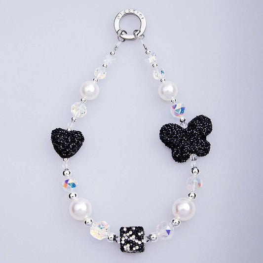 Picocici Siyah Taş Tasarımlı Üç Boyutlu Kelebek Telefon Bilek Askı İpi