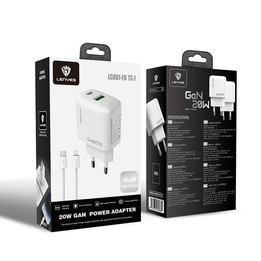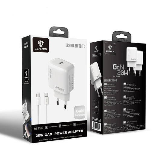 Lenyes LCH91-TC-TC Type-C to Type-C GaN Teknolojili PD ve USB Hızlı Şarj Özellikli Şarj Seti 20W