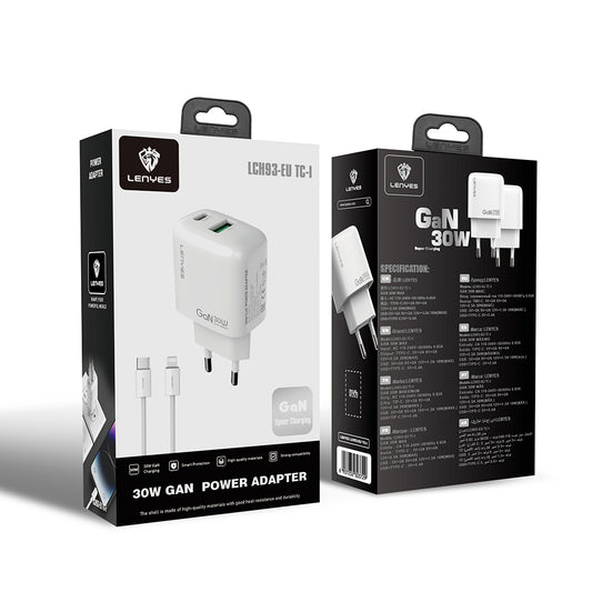Lenyes LCH93-TC-L Type-C to Lightning GaN Teknolojili PD ve USB Hızlı Şarj Özellikli Şarj Seti 30W
