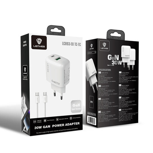Lenyes LCH93-TC-TC Type-C to Type-C GaN Teknolojili PD ve USB Hızlı Şarj Özellikli Şarj Seti 30W