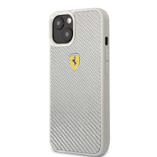 Apple iPhone 13 Kılıf Ferrari Orjinal Lisanlı Klasik Metal Logolu Karbon Dizayn Kapak