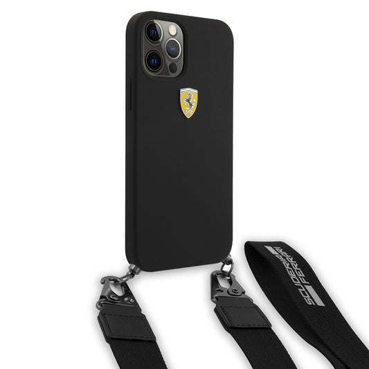 Apple iPhone 12 Pro Kılıf Ferrari Orjinal Lisanslı Askılı Metal Logolu Kapak