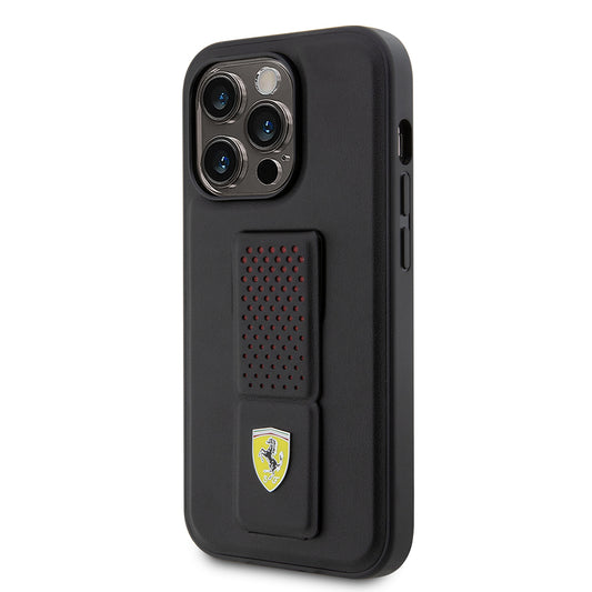 Apple iPhone 14 Pro Kılıf Ferrari Orjinal Lisanlı Klasik Metal Logolu Delikli Standlı Deri Kapak