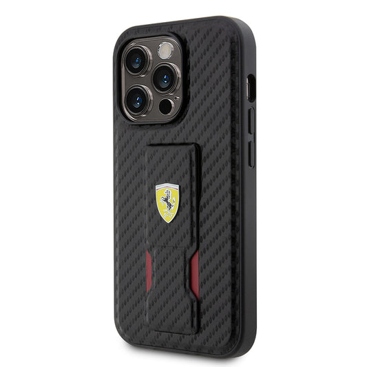 Apple iPhone 14 Pro Kılıf Ferrari Orjinal Lisanlı Klasik Metal Logolu Delikli Standlı Karbon Kapak
