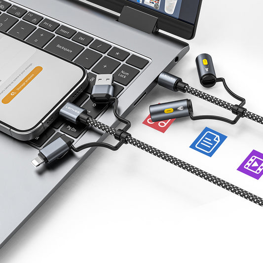 Lenyes LC111 Çoklu Şarj Kablolu Fener Ve Çakmaklık Özellikli 4in1 Kablo 60W 1M