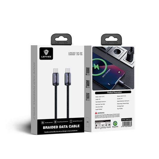 Lenyes LC537 Type-C to Type-C Hızlı Şarj Özellikli Örgülü Data ve Şarj Kablosu 60W 1M