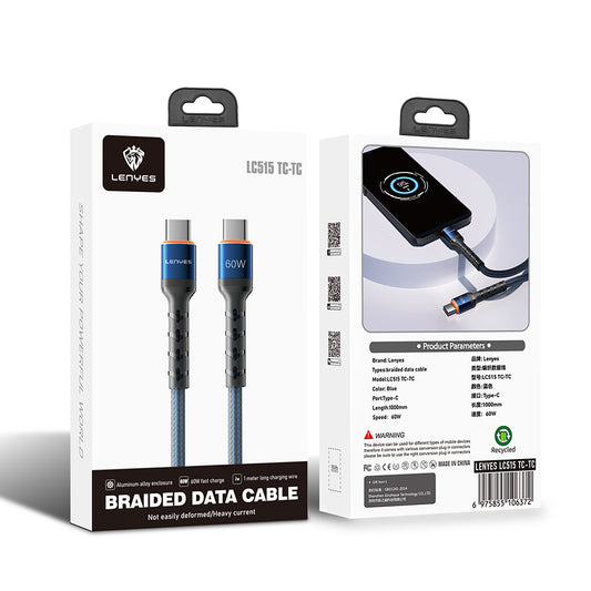 Lenyes LC515 Type-C to Type-C Hızlı Şarj Özellikli Örgülü Data ve Şarj Kablosu 60W 1M