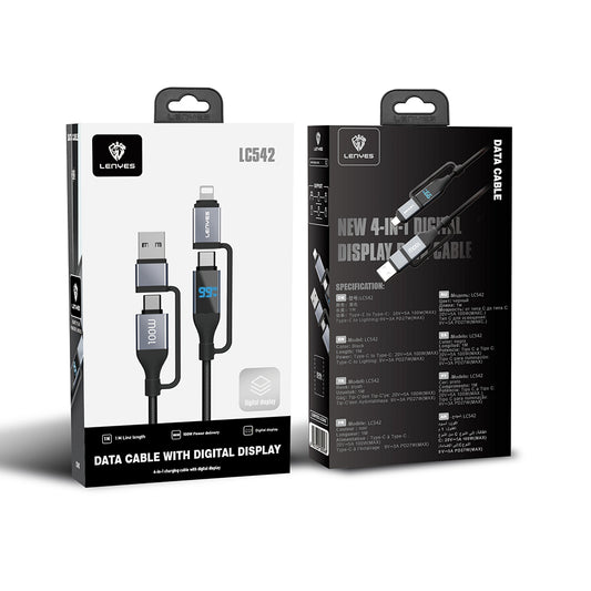 Lenyes LC542 Dijital Göstergeli 4in1 USB-A - Type-C + Type-C to Lightning 100W 1M