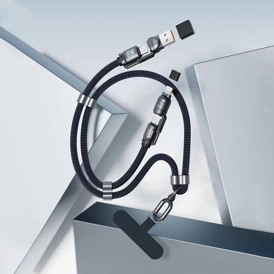 Zore 4in1 Çoklu USB-A+Type-C to Type-C+Lightning Askı İpi Tasarımlı Şarj ve Data Kablosu 240W 70cm