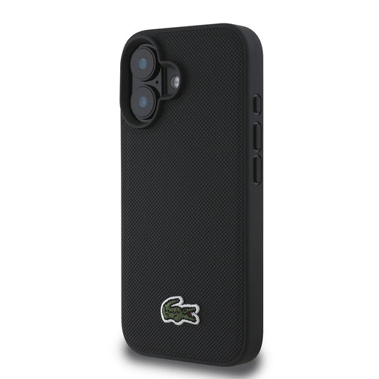 Apple iPhone 16 Kılıf Lacoste Orjinal Lisanslı PU Pike Desenli Arka Yüzey İkonik Timsah Dokuma Logolu Kapak + Type-C Kablo 1.5m