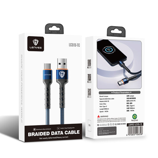 Lenyes LC515 USB-A to Type-C Hızlı Şarj Özellikli Örgülü Data ve Şarj Kablosu 3A 1M