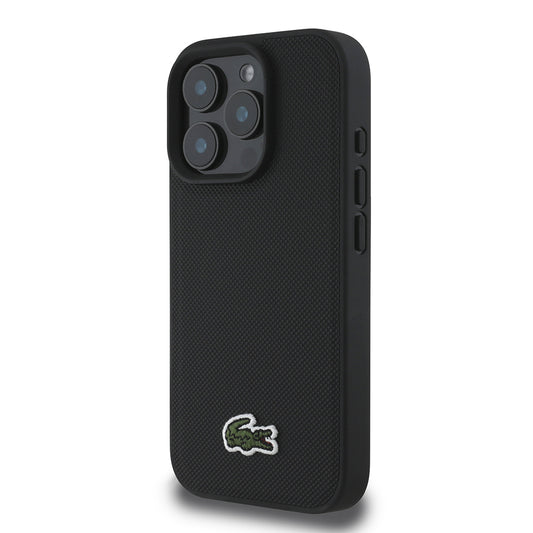Apple iPhone 16 Pro Kılıf Lacoste Orjinal Lisanslı PU Pike Desenli Arka Yüzey İkonik Timsah Dokuma Logolu Kapak + Type-C Kablo 1.5m