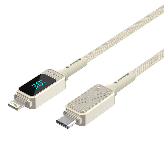 Wiwu Wi-C038 Titan Serisi Lightning to Type-C PD 30W LED Dijital Göstergeli Şarj ve Data Kablosu 1.2M