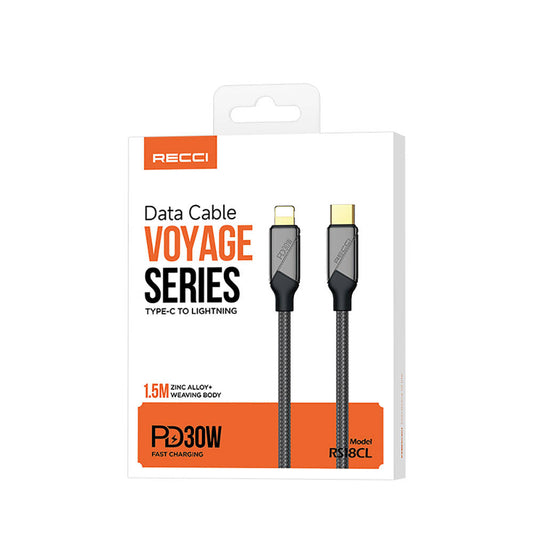 Recci RS18CL Voyage Serisi Type-C to Lightning PD 30W Hızlı Şarj Özellikli Data ve Şarj Kablosu 1.5M