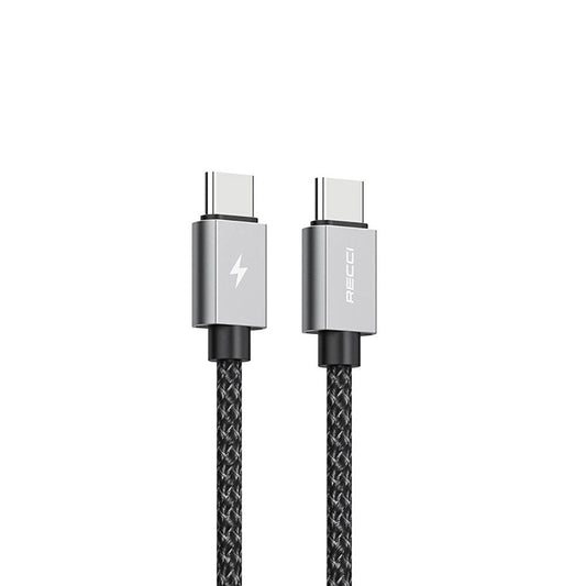 Recci RTC-P08CC Type-C to Type-C PD 100W 5A Hızlı Şarj Naylon Örgü Tasarım Şarj ve Data Kablosu 1.5M