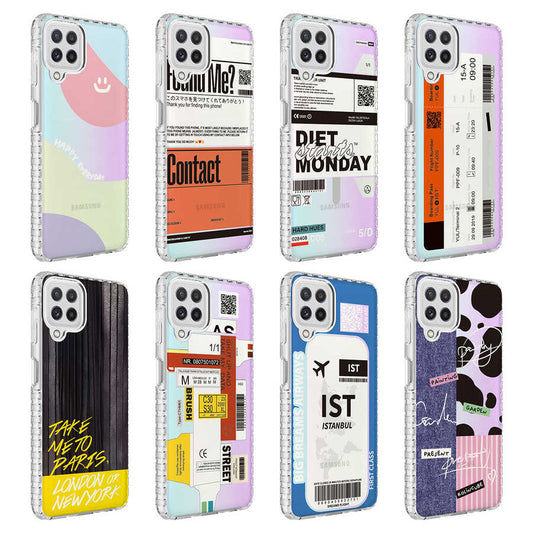 Galaxy M22 Kılıf Airbag Kenarlı Renkli Desenli Silikon Zore Elegans Kapak