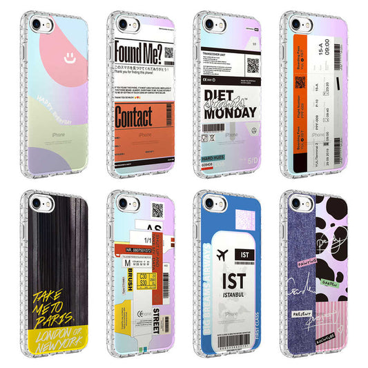Apple iPhone SE 2020 Kılıf Airbag Kenarlı Renkli Desenli Silikon Zore Elegans Kapak